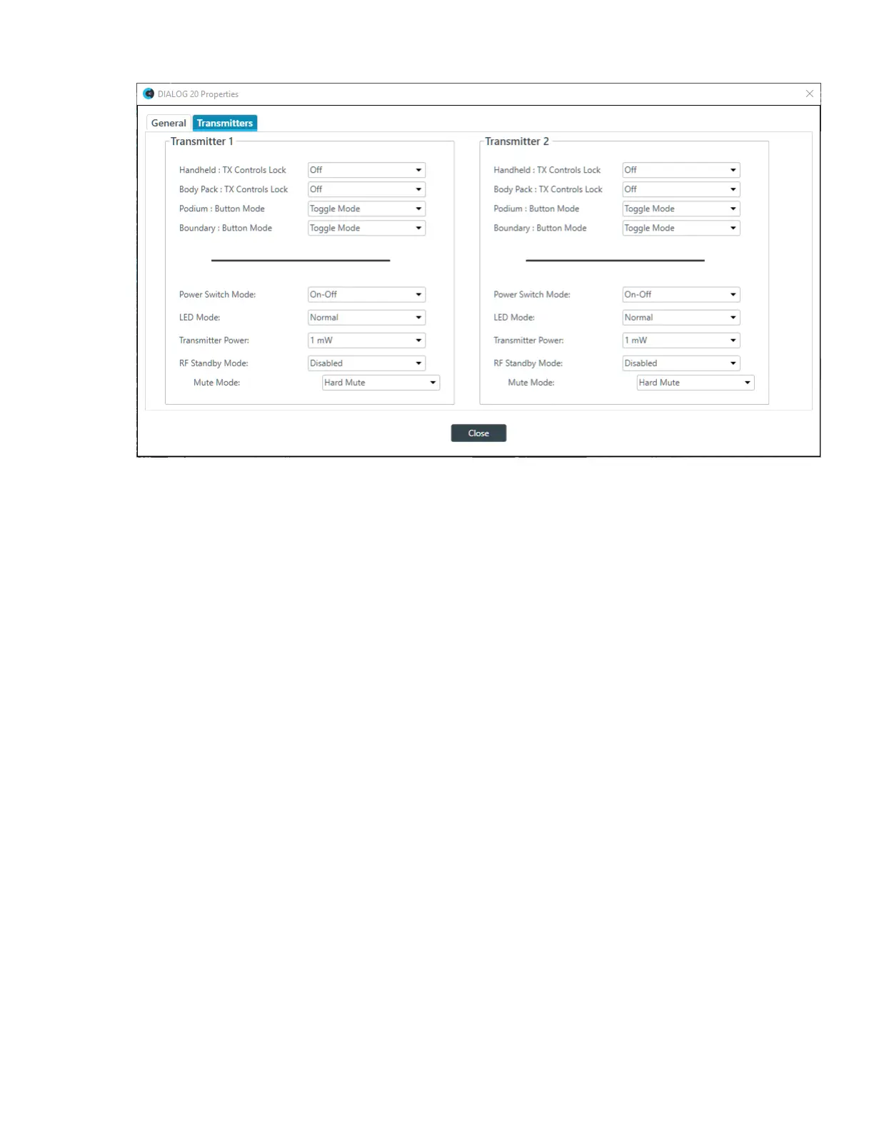 Handheld: Tx Controls Lock Locks the control buttons on hand-held transmitters so that