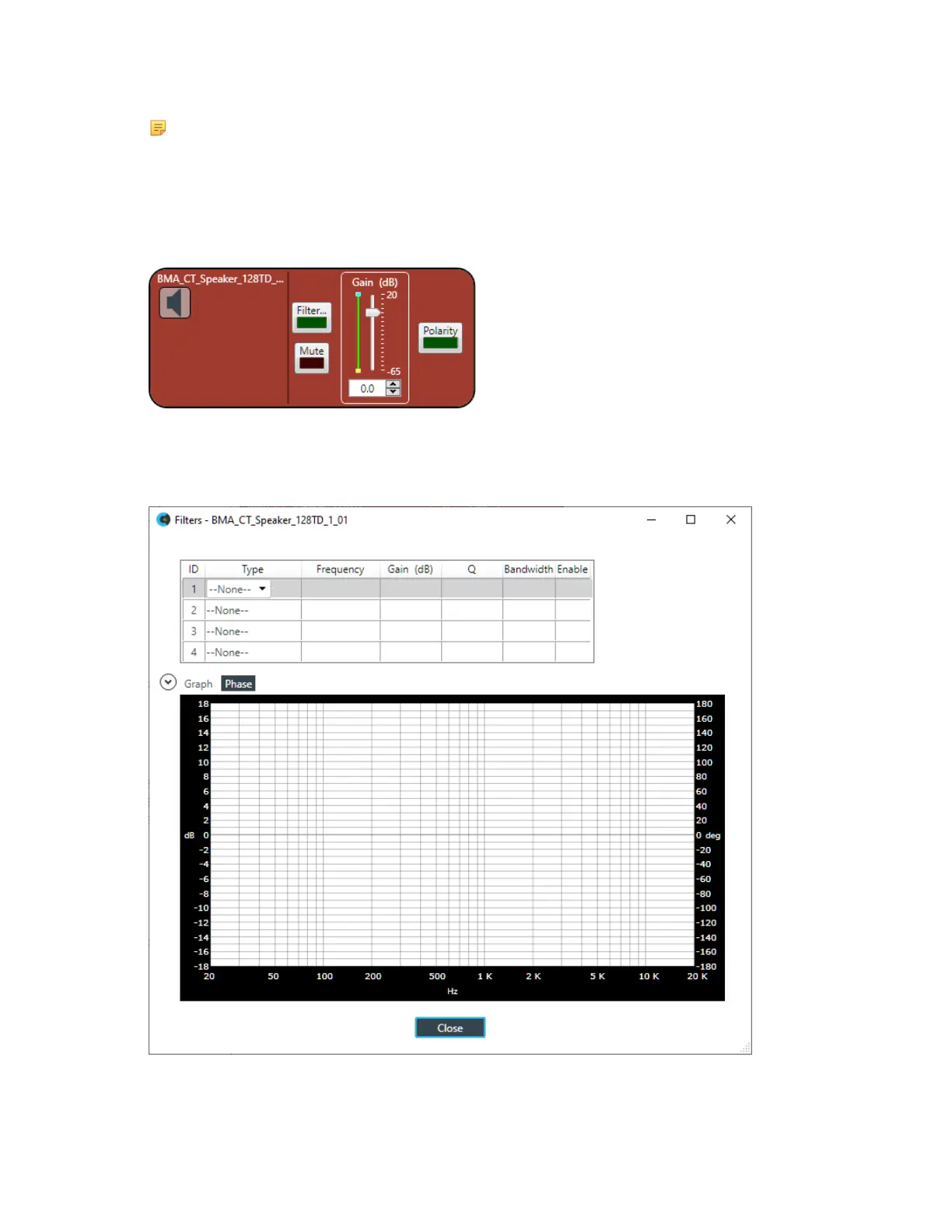 The BMA CT Speaker Channel Properties block appears: