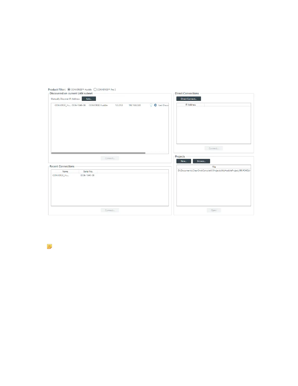 All discovered Huddle devices are listed under Discovered on current LAN subnet. Devices that have