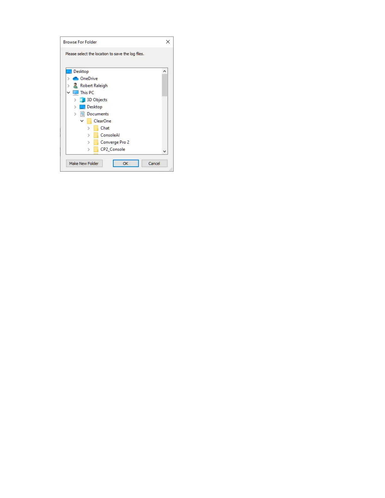10.(Optional) If you want to create a sub-folder within the Log folder, to organize logs, click Make New