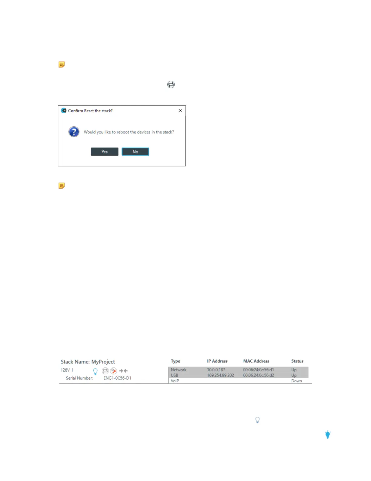 You can also locate a device by causing its Locate LED to blink, reset any device in the stack, and change