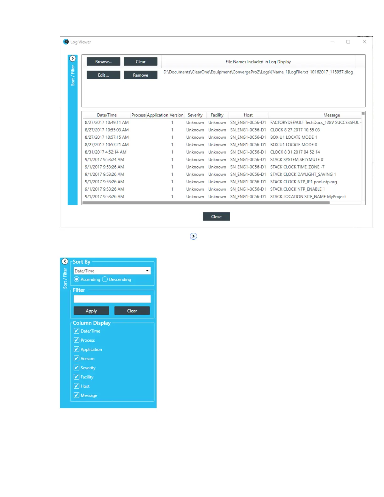6. (Optional) You can filter which parts of the log file you see by putting a text string in the Filter field. The