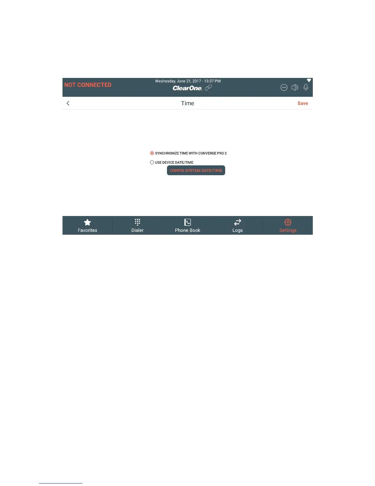 NOTE: In order for the correct time to be retrieved from the CONVERGE Pro 2, you