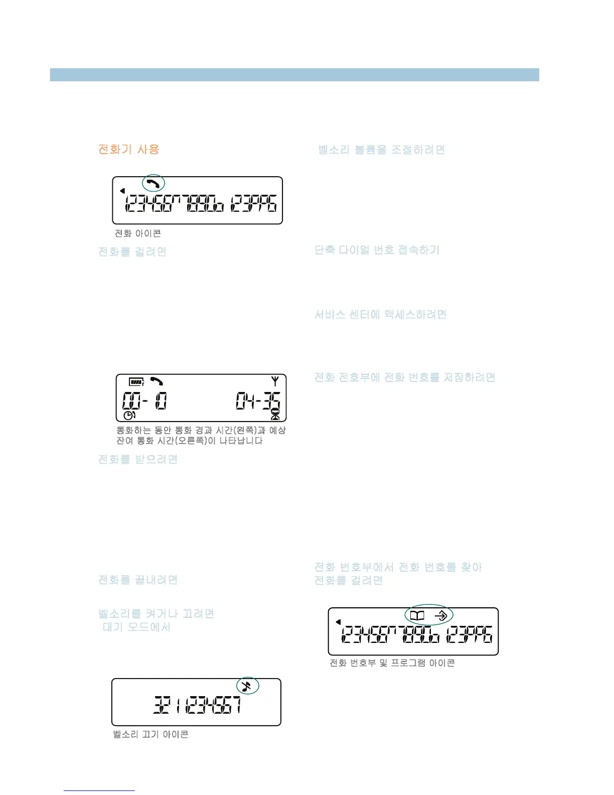 키(0-9)를 눌러 전화를 겁니다. 번호가 LCD