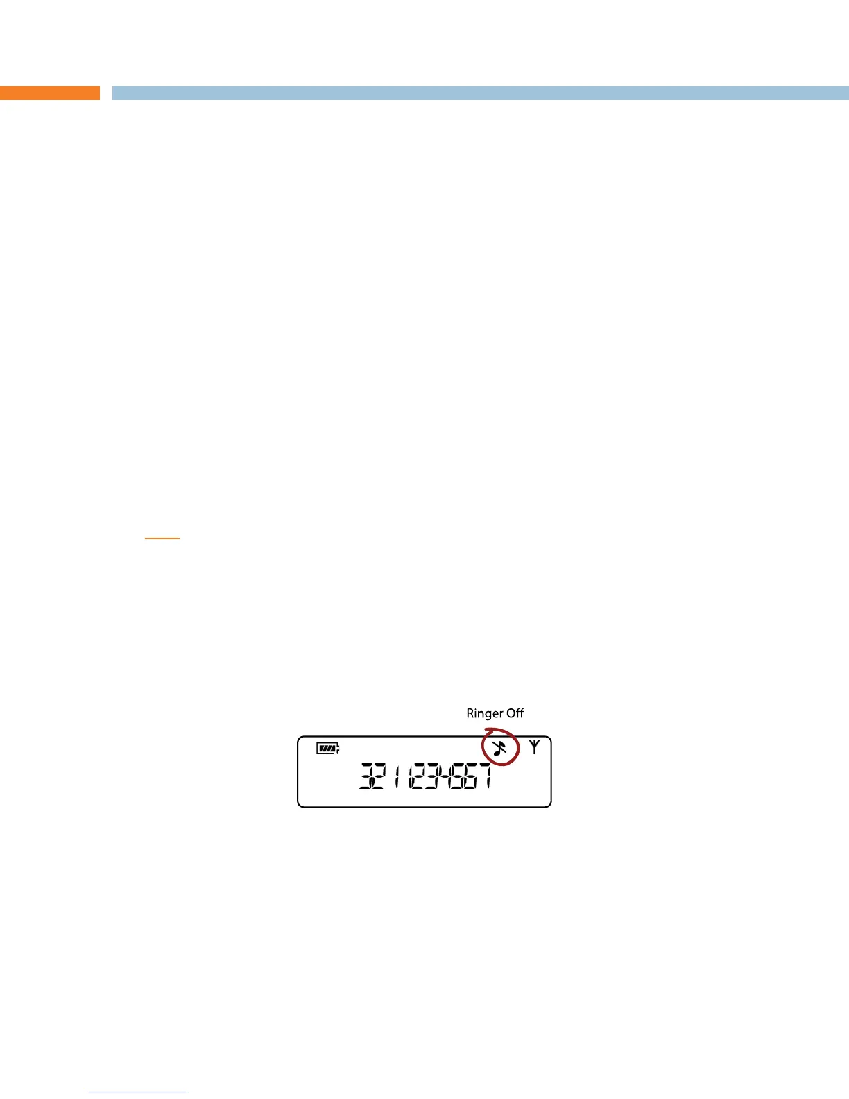 • Press and hold the star (*) key. The ringer off icon illuminates when ringer is turned off (as shown above).