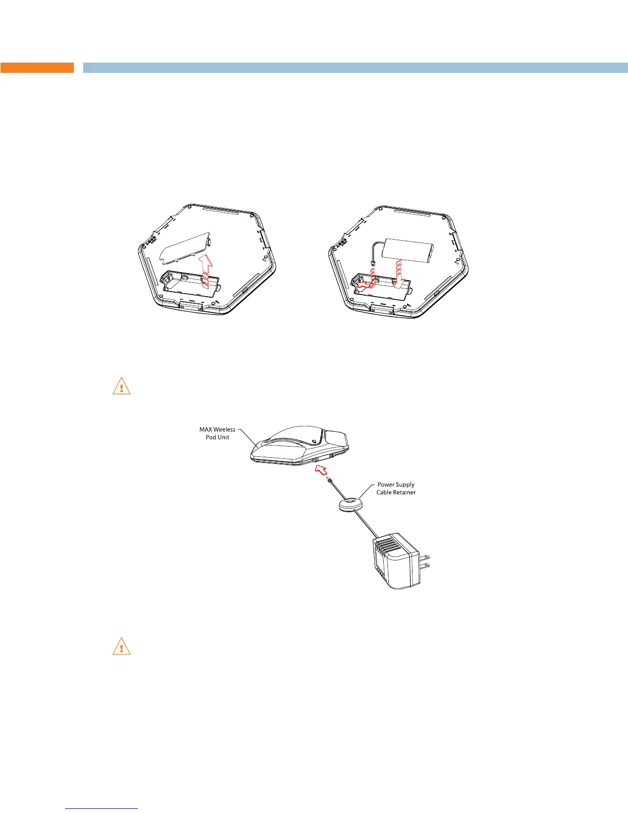 Connect the power adapter to the conferencing pod and plug it into an electrical outlet (as shown above).