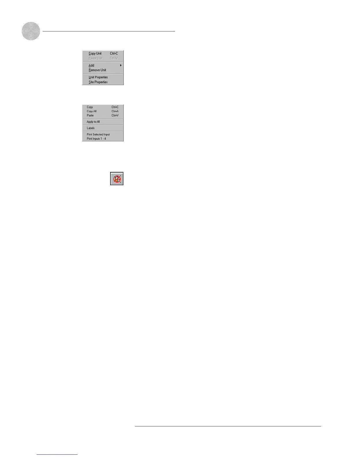 example, if you are in the Inputs 1–8 window, using the shortcut menu will allow you