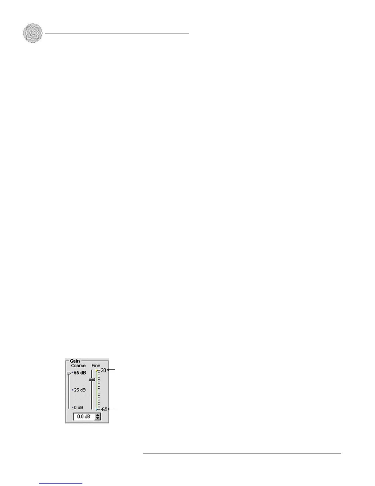 • Set the Coarse gain to 55dB for a mic input, 25dB for active equipment that