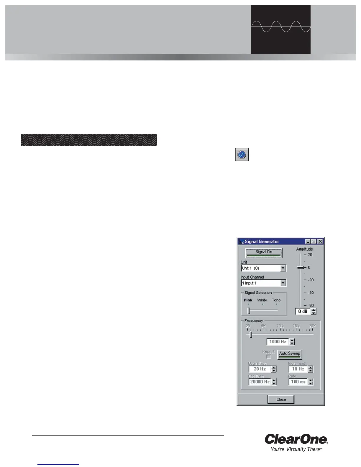 signal paths, gain settings, etc. The Signal Generator can generate pink noise, white