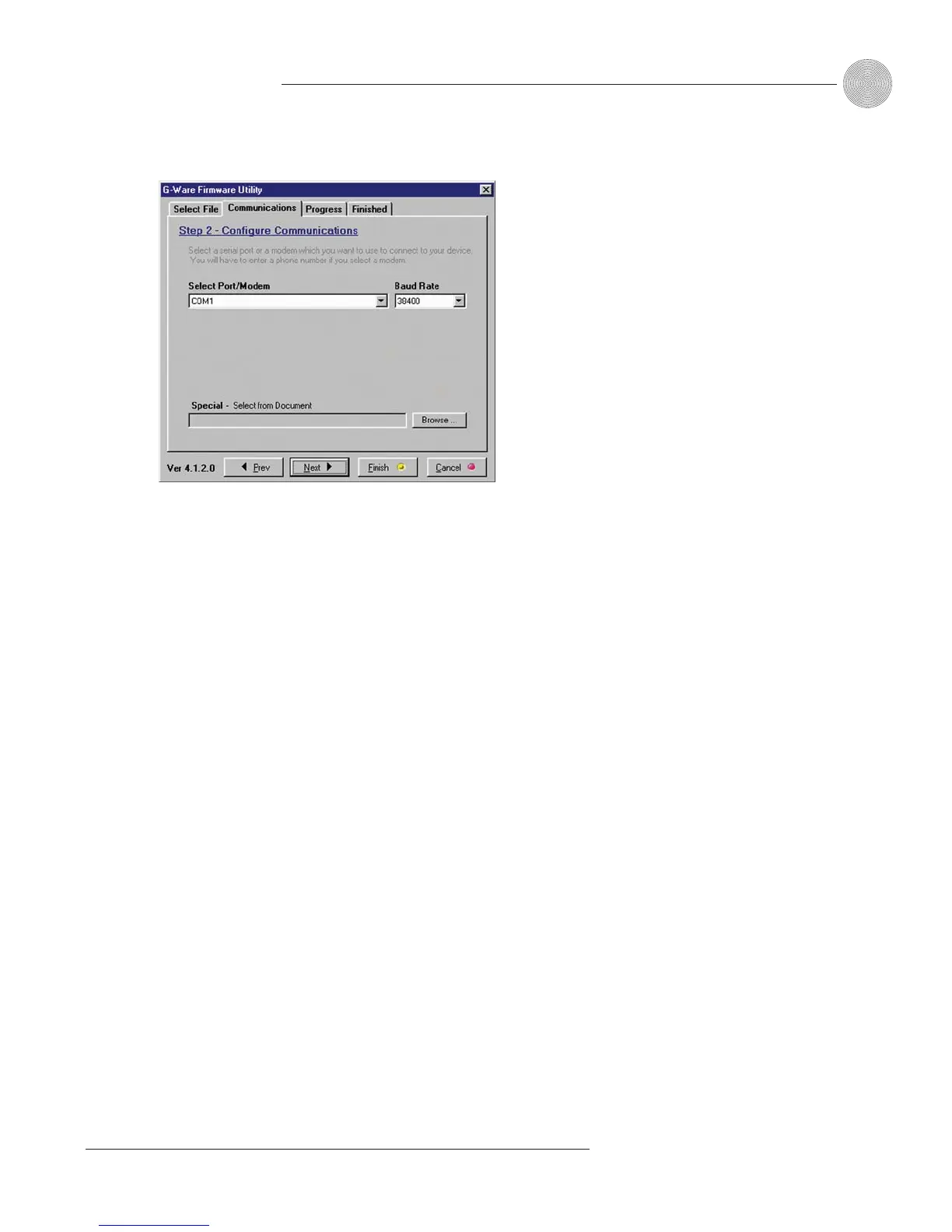 5. Select the PC COM port you are using for the upgrade. Select the Baud