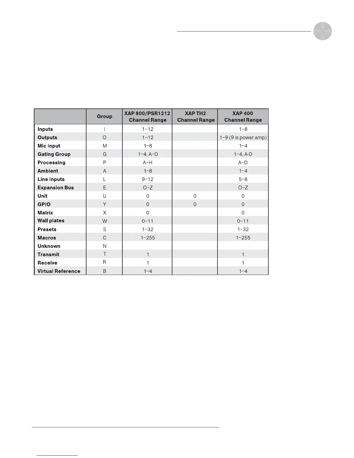 of M and a channel value of * would mean that the command is to be applied to all channels of group M (mic