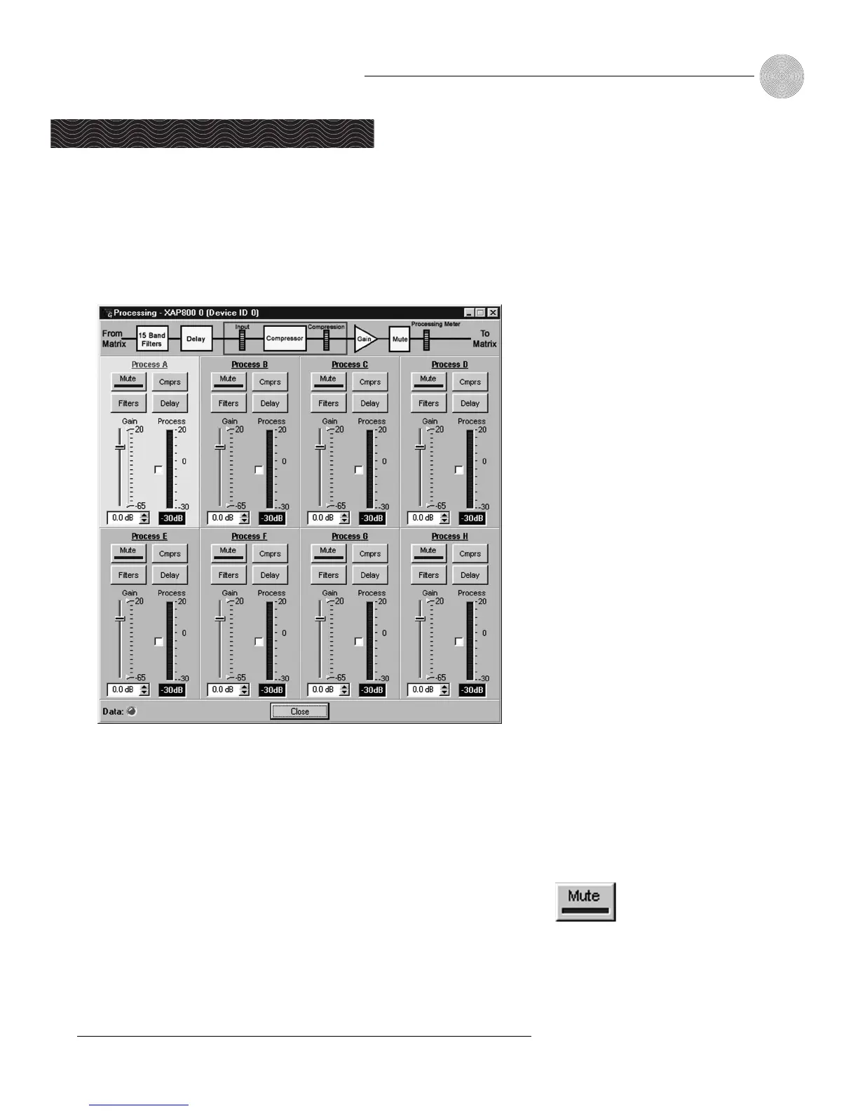 Mute mutes the processor.The light on the button illuminates red when Mute is