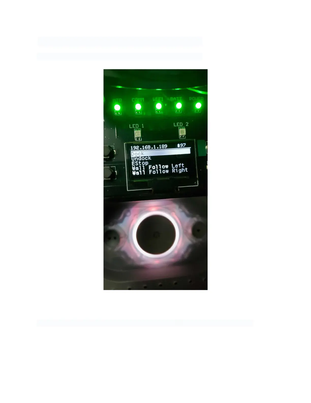 The TurtleBot 4 will display its WiFi IP address on the display.