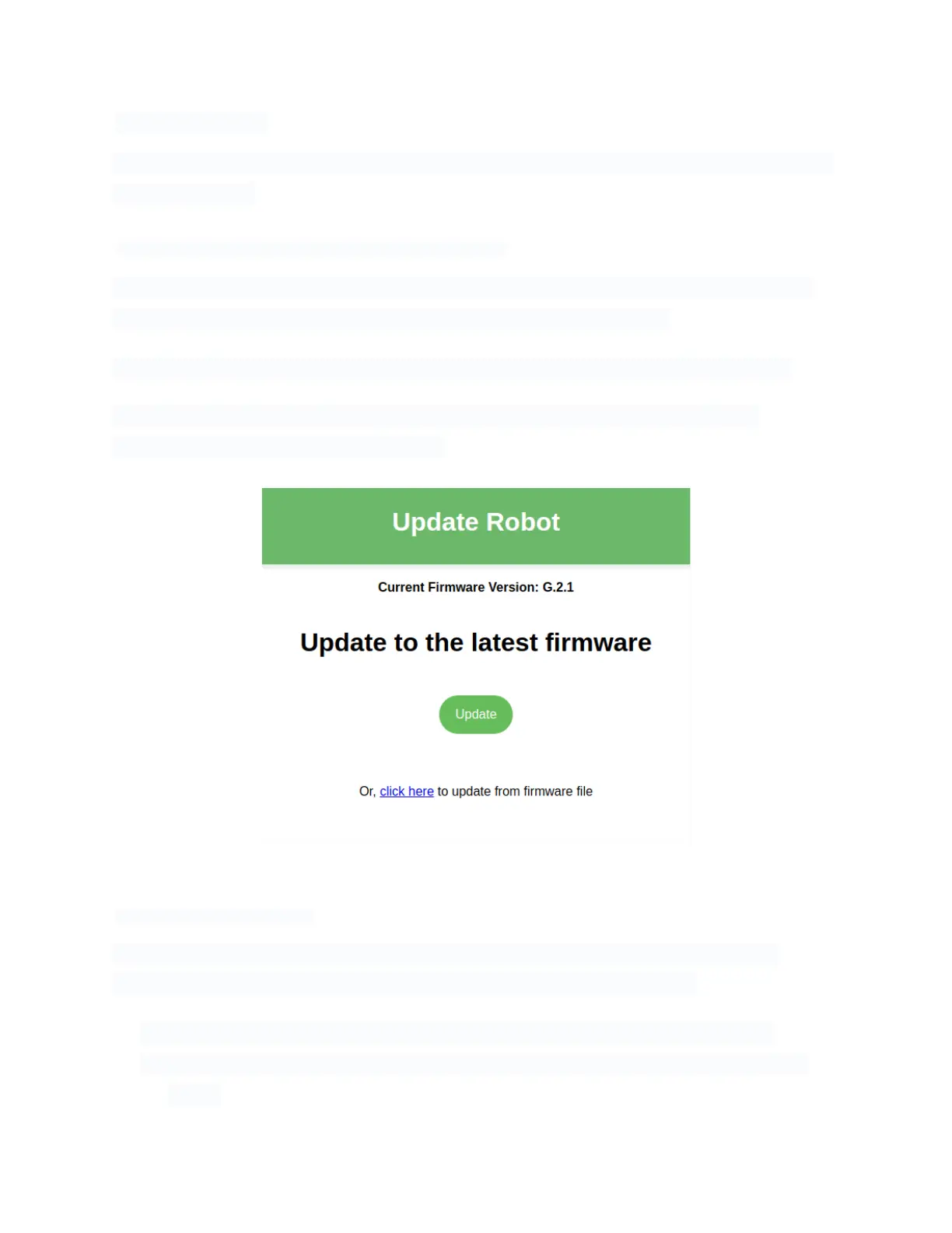 Go to the Update tab and click the ‘Update' button. The robot will automatically