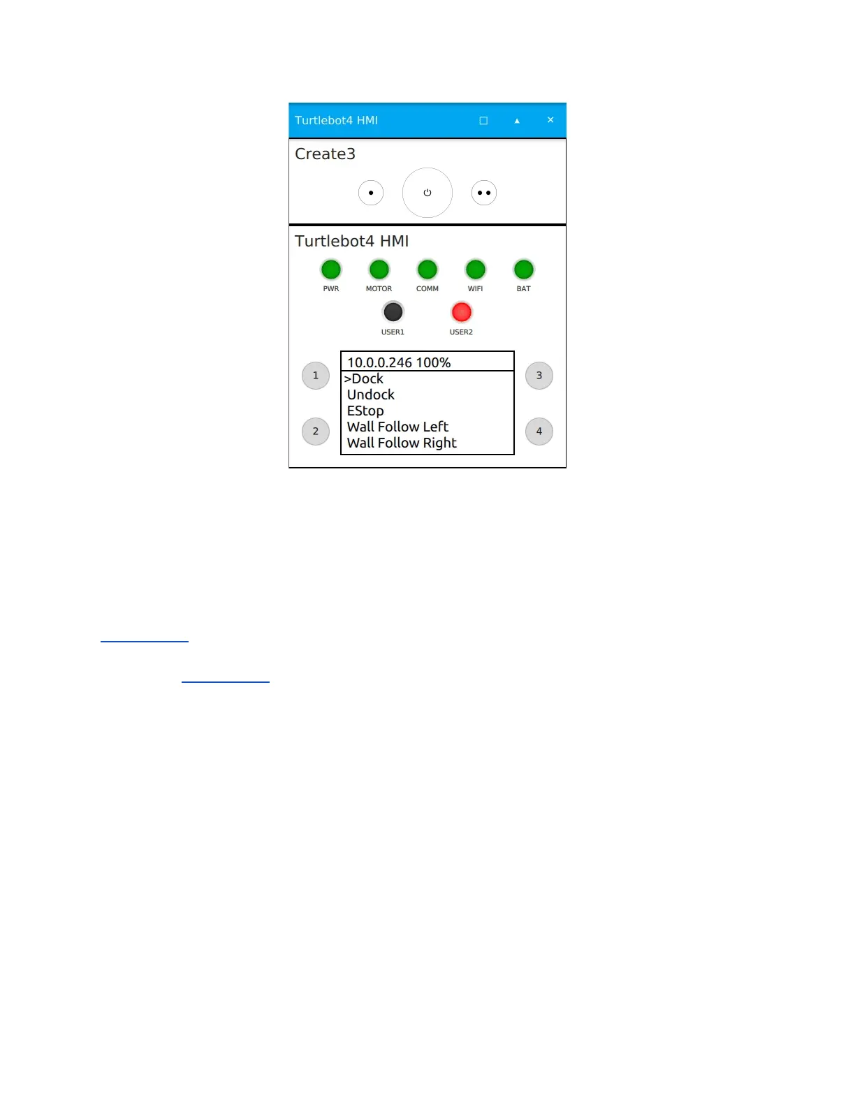 The TurtleBot 4 display has a simple scrolling menu. There are 4 control functions for the menu: