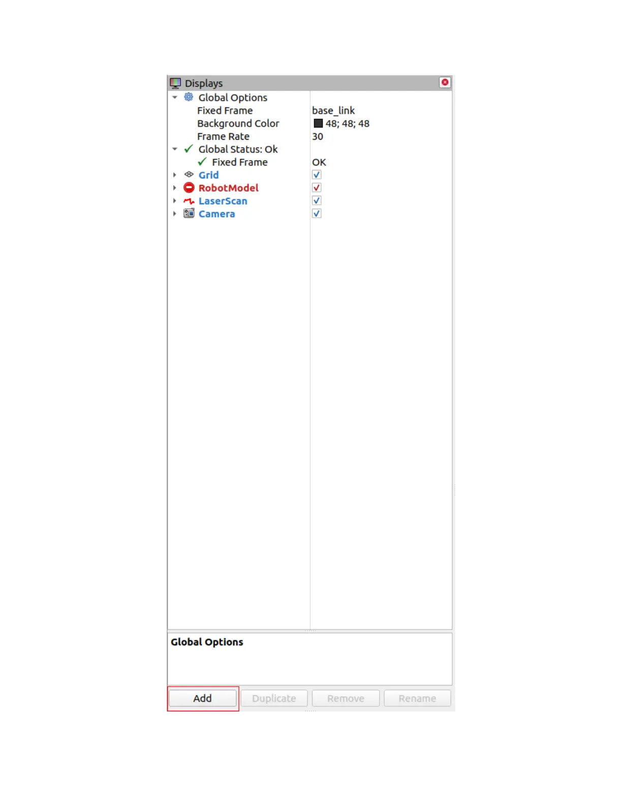 Adding Displays in Rviz2