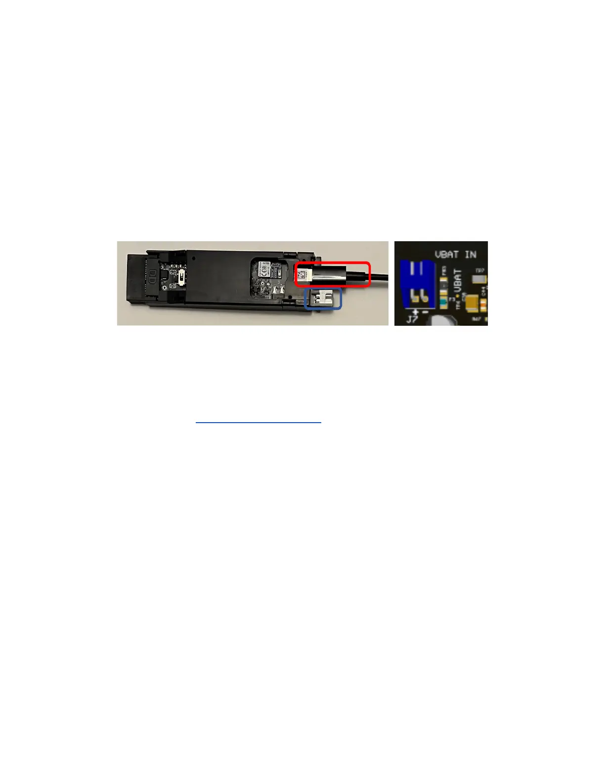 through the VBAT connector J7, which uses JST XH-style connector. The connector has been