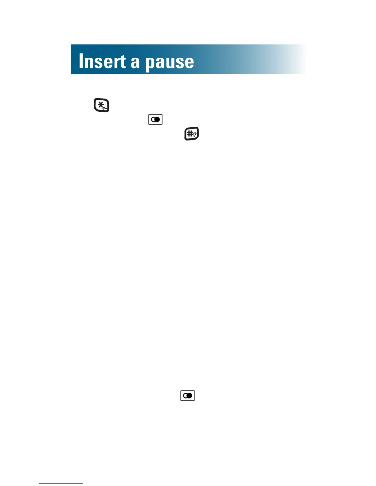 • One pause ( ) to wait for the passcode prompt