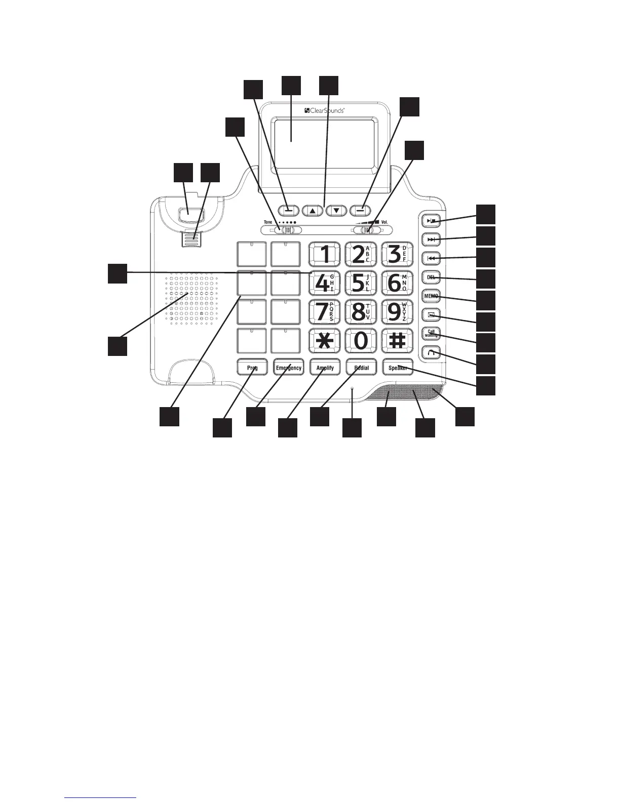 08. Handset Volume Control 22. Redial Key