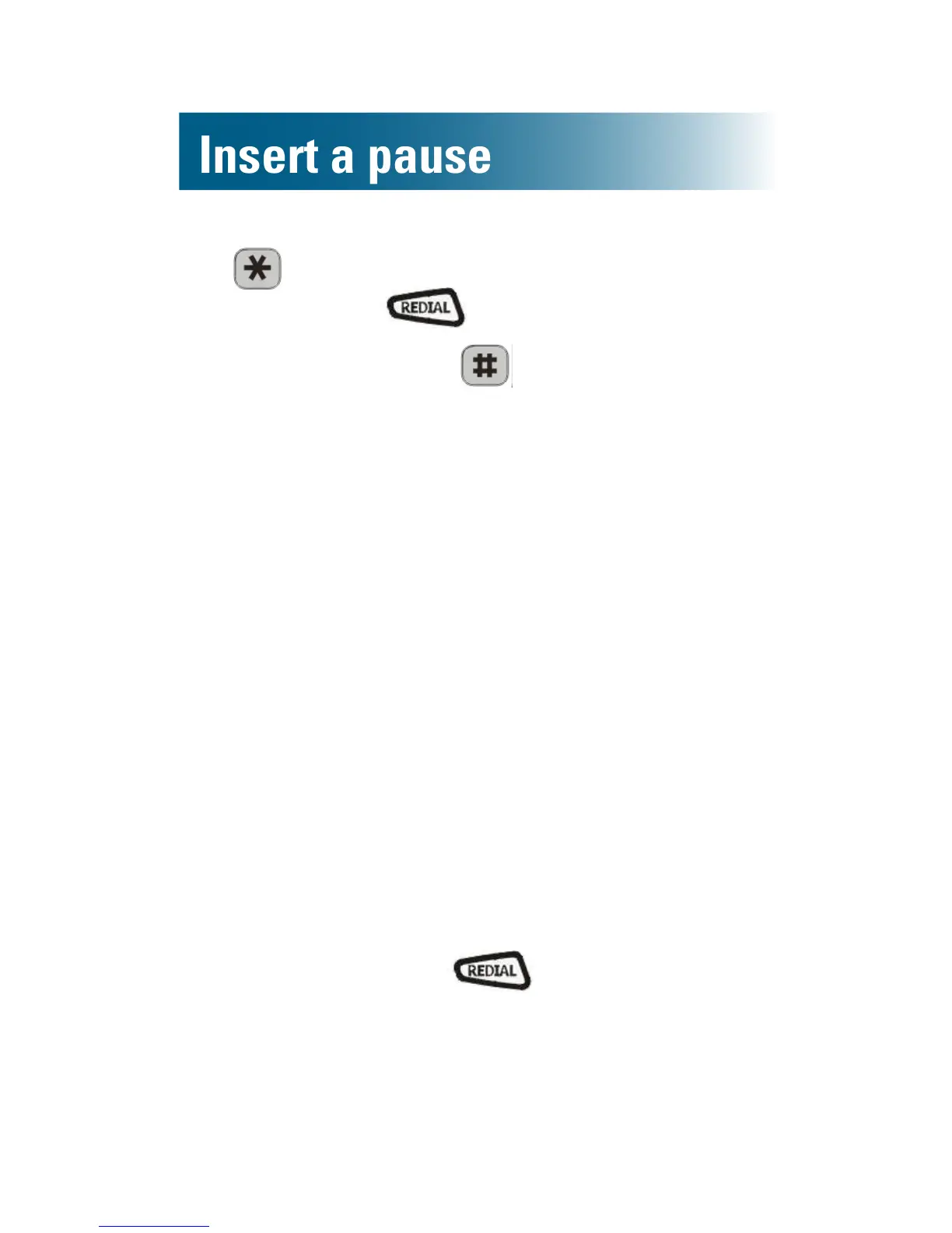 • One pause ( ) to wait for the passcode