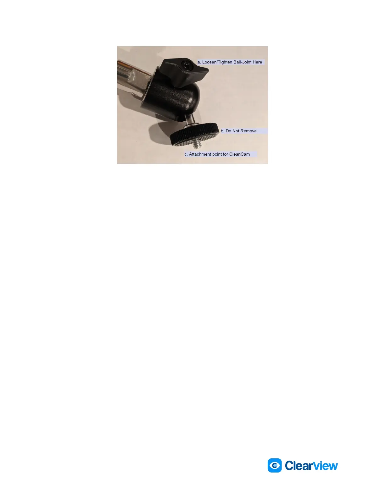 i. Note: the CleanCam should be oriented such that the ¼”-20 attachment point is