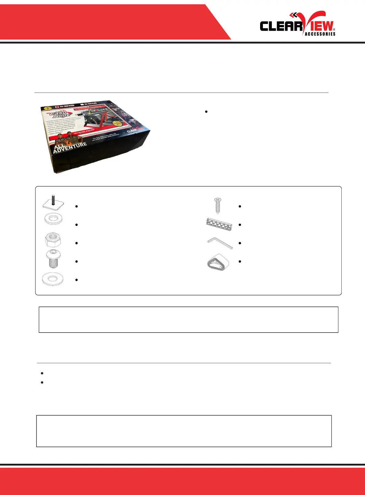 If anything is missing, or damaged, please do not install your new Easy Slide® and