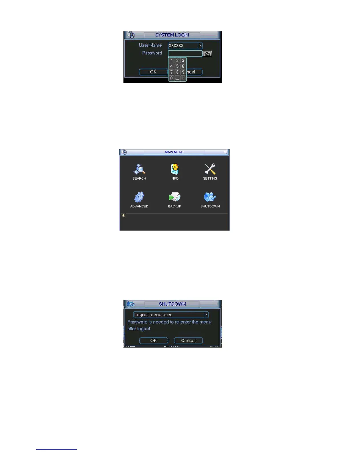 In the main menu, click shutdown button, you can see an interface is shown as below. See