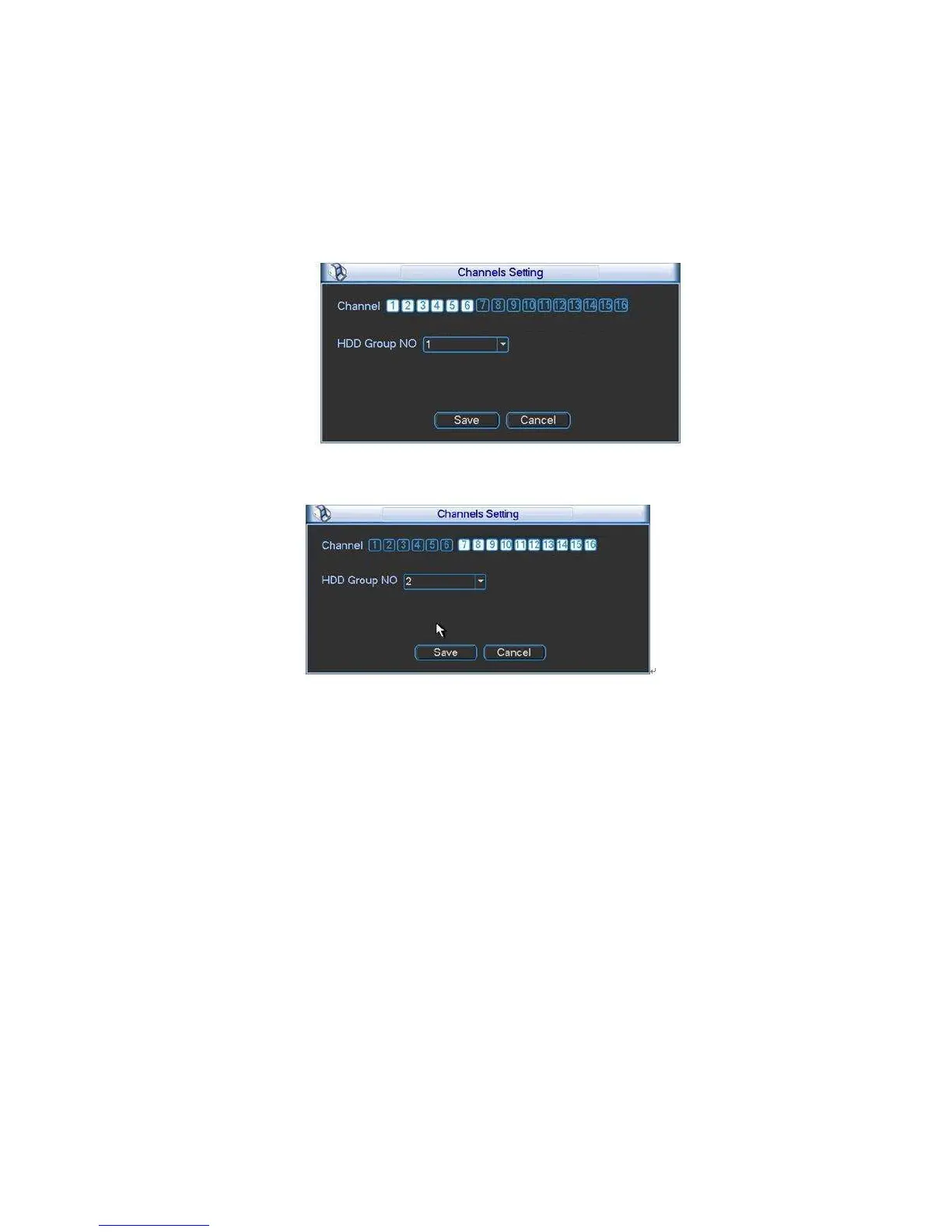 and channels 7 to 16 are associated to HDD Group NO 2. Therefore the records of channels 1 to