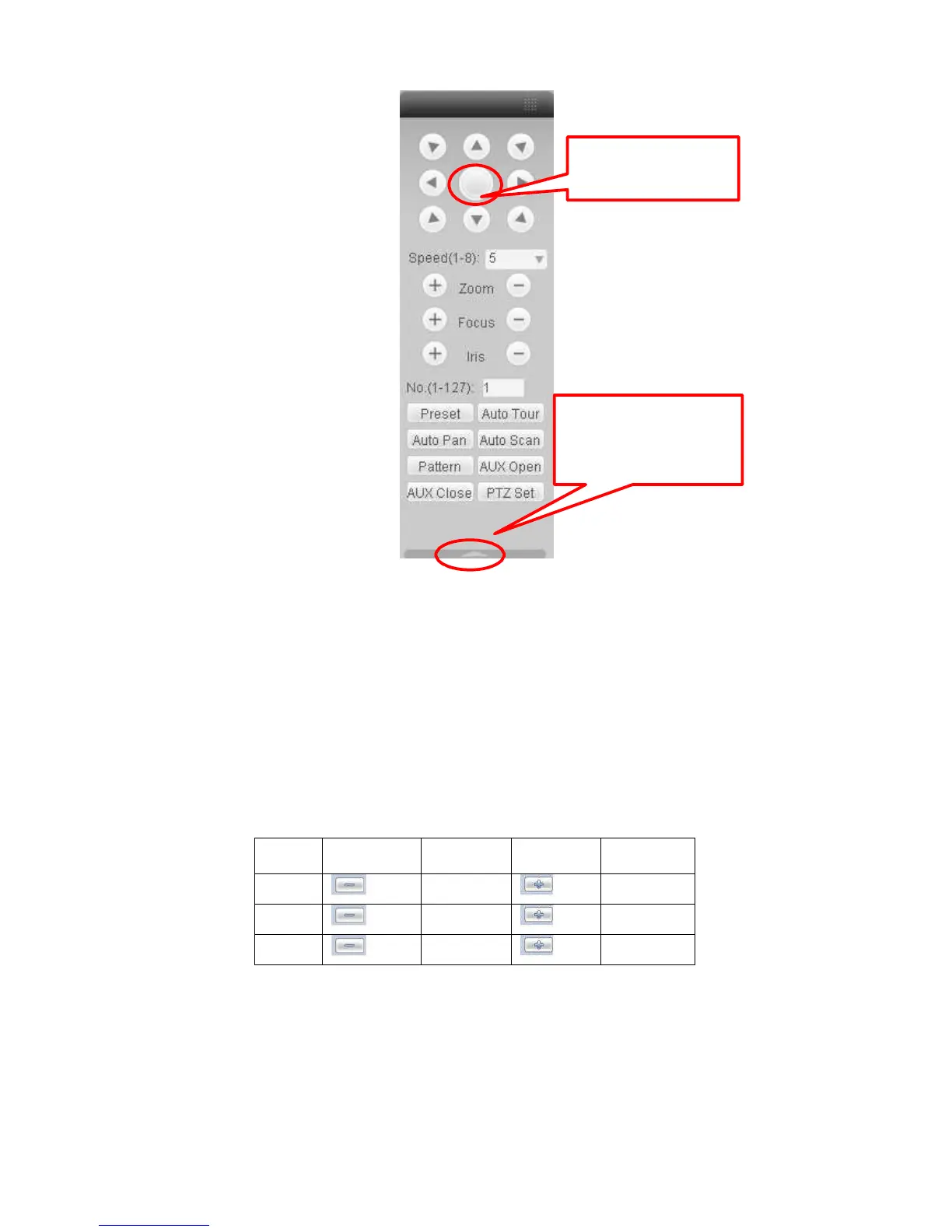 mouse in the screen to adjust section size. It can realize PTZ automatically.