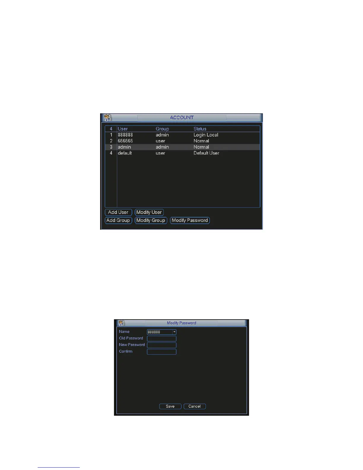 There are four default users: admin/888888/666666 and hidden user “default”. Except user