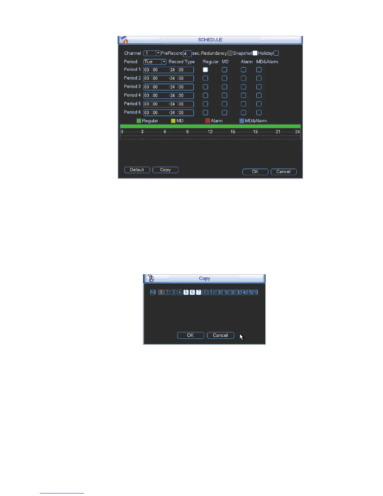 Please note, if you select ALL in Figure 2-4, the record setup of all channels are the same and the Copy