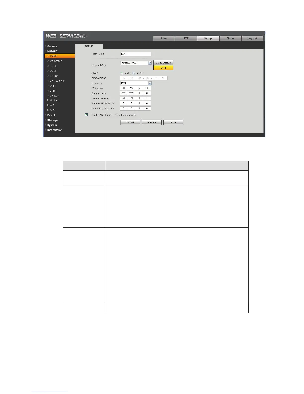 Ethernet Card Please select the Ethernet port. It is for the wire LAN by default.