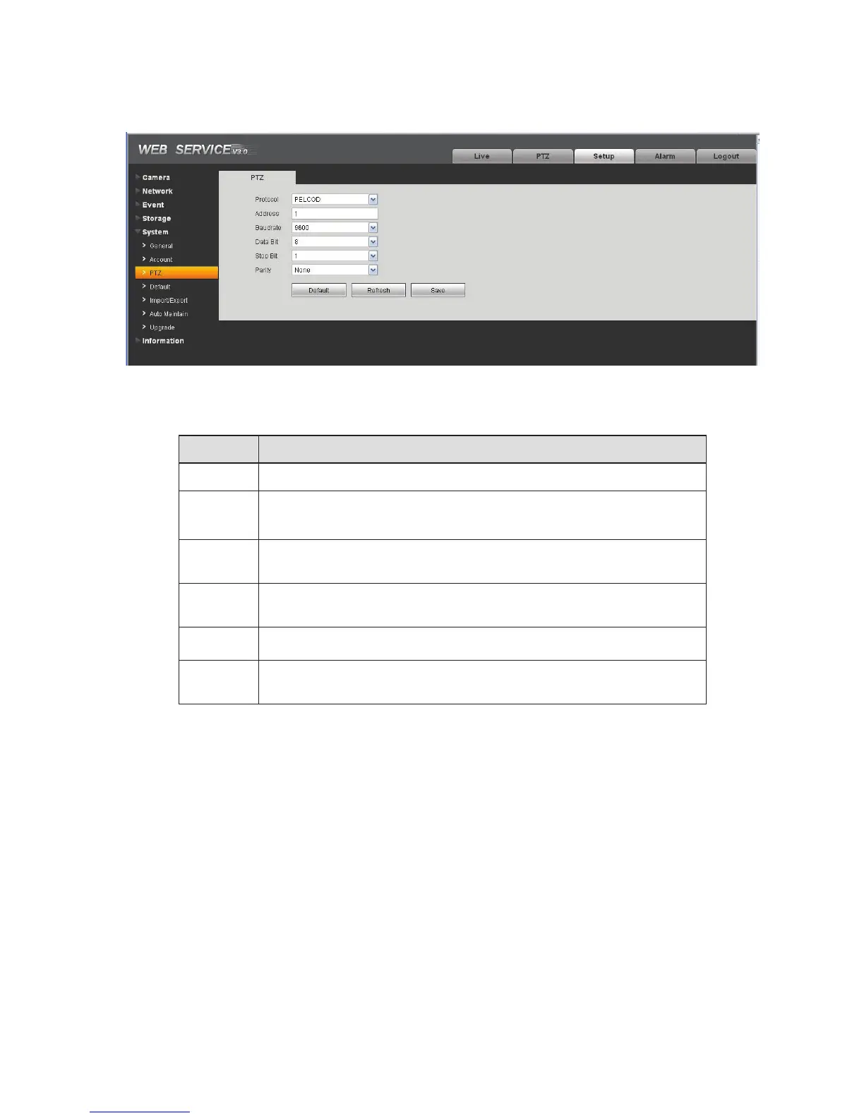 Data Bit Default setup is 8. Please set according to the speed dome dial switch