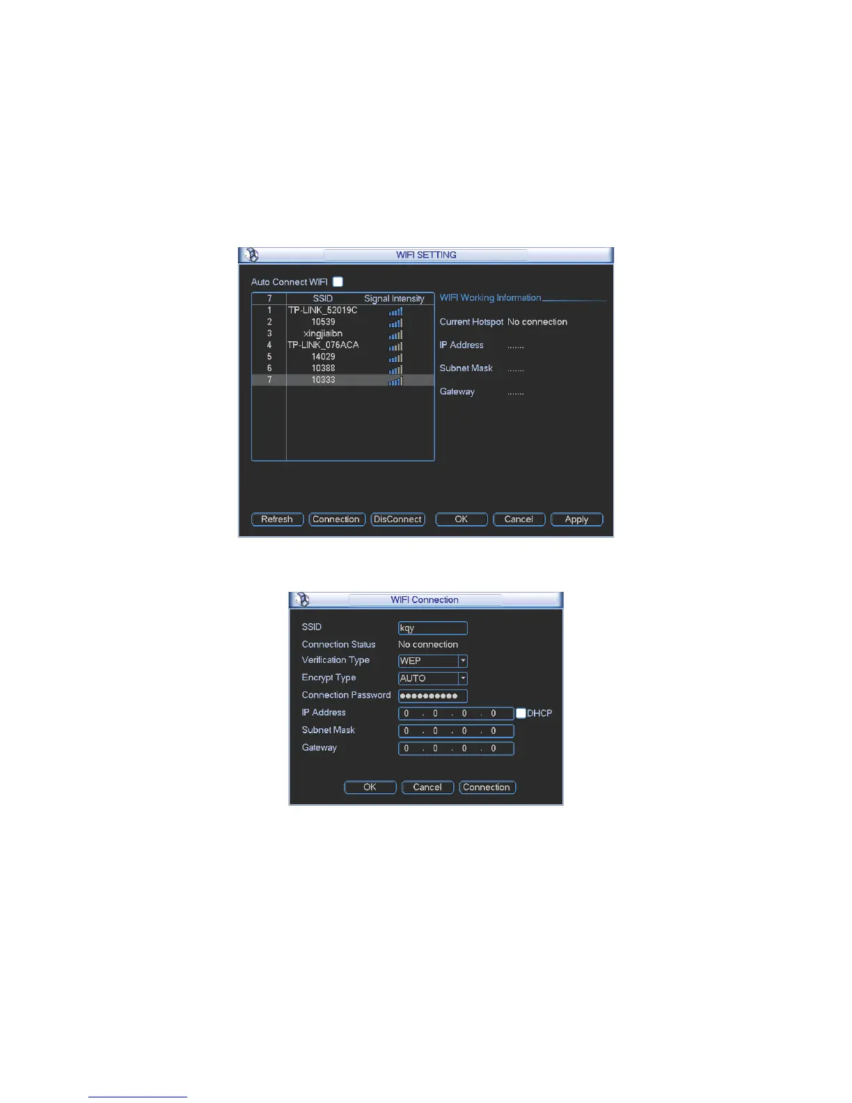 z Auto connect WIFI: Check the box here, system automatically connects to the previous WIFI