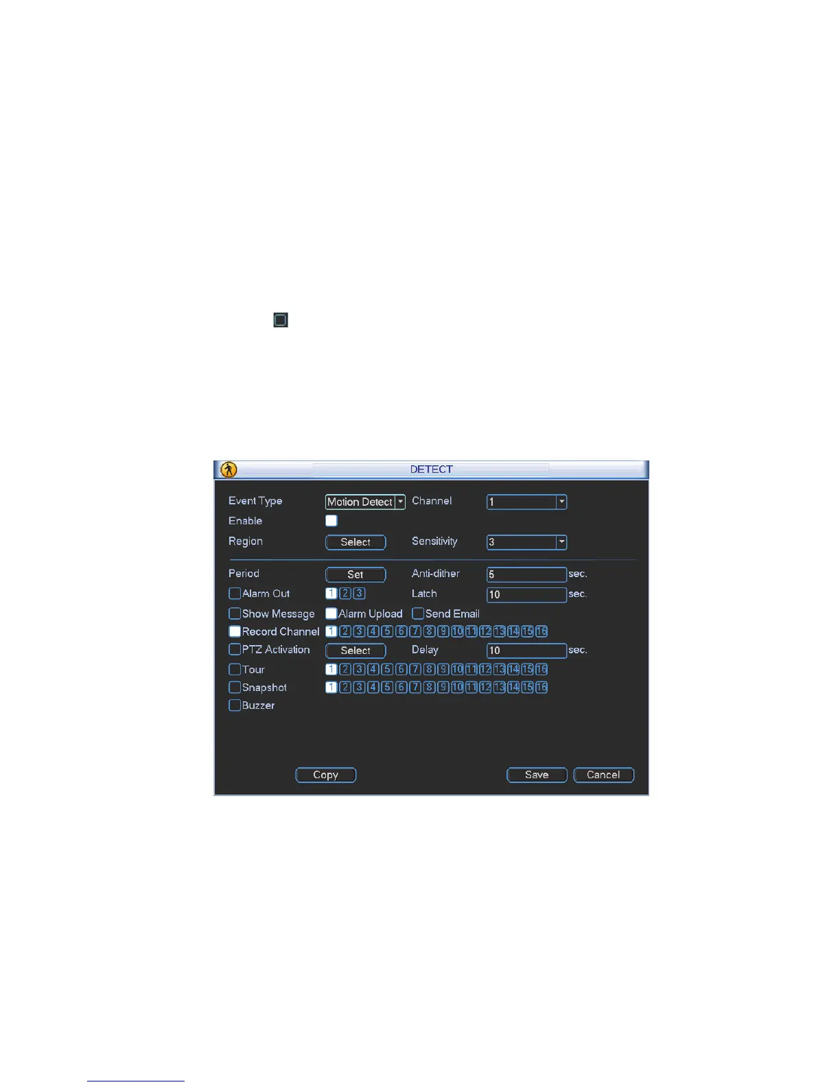 In Figure 4-59, you can left click mouse and then drag it to set a region for motion detection. Click