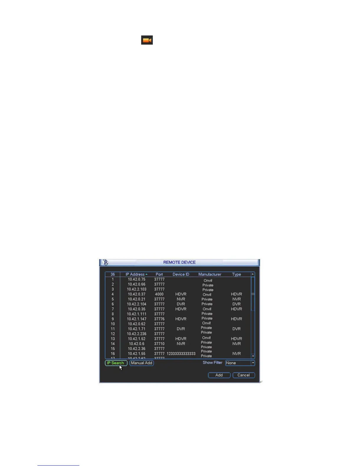 z Manual add: Click it to add the IPC manually. The port number is 37777. The default user