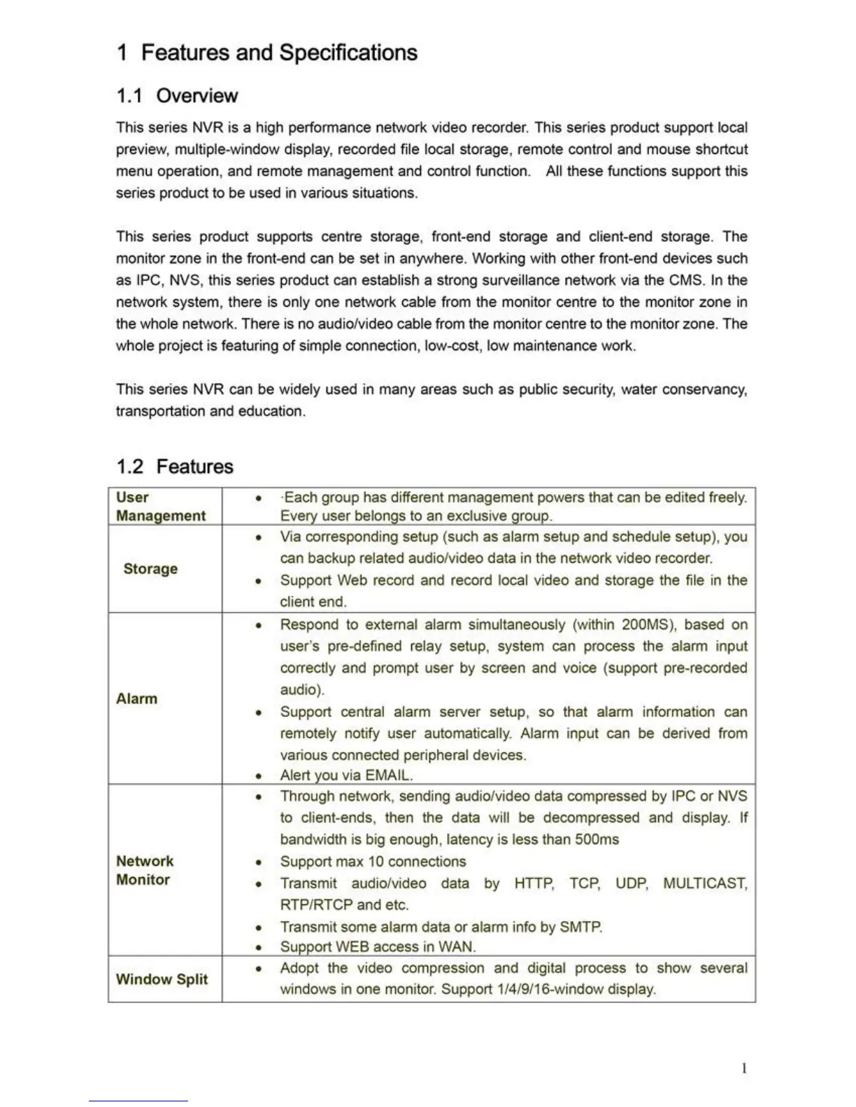 ClearView Phoenix - 1 Features and Specifications; 1.3 Network Video Recorder
