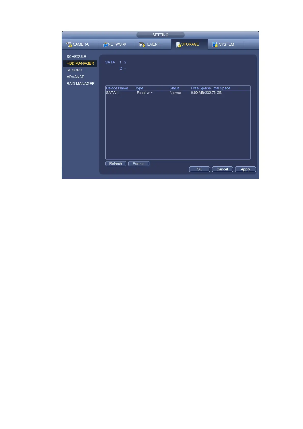 b) Select a HDD and then select format from the dropdown list. Click Execute button.