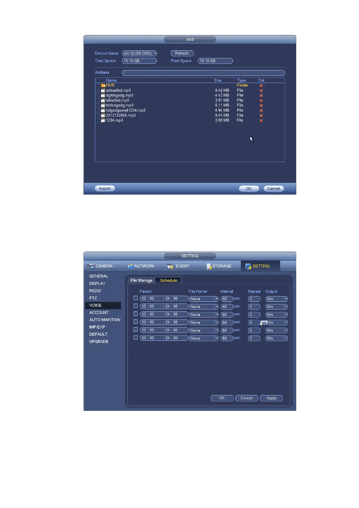 It is to set schedule broadcast function. You can play the different audio files in the specified periods. See