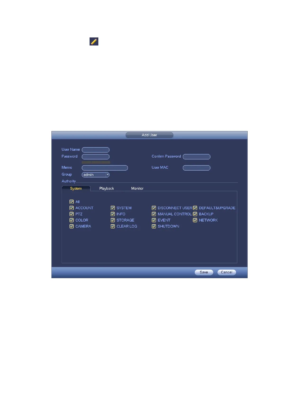 Click modify user button in Figure 4-175 , the interface is shown as in Figure 4-176.