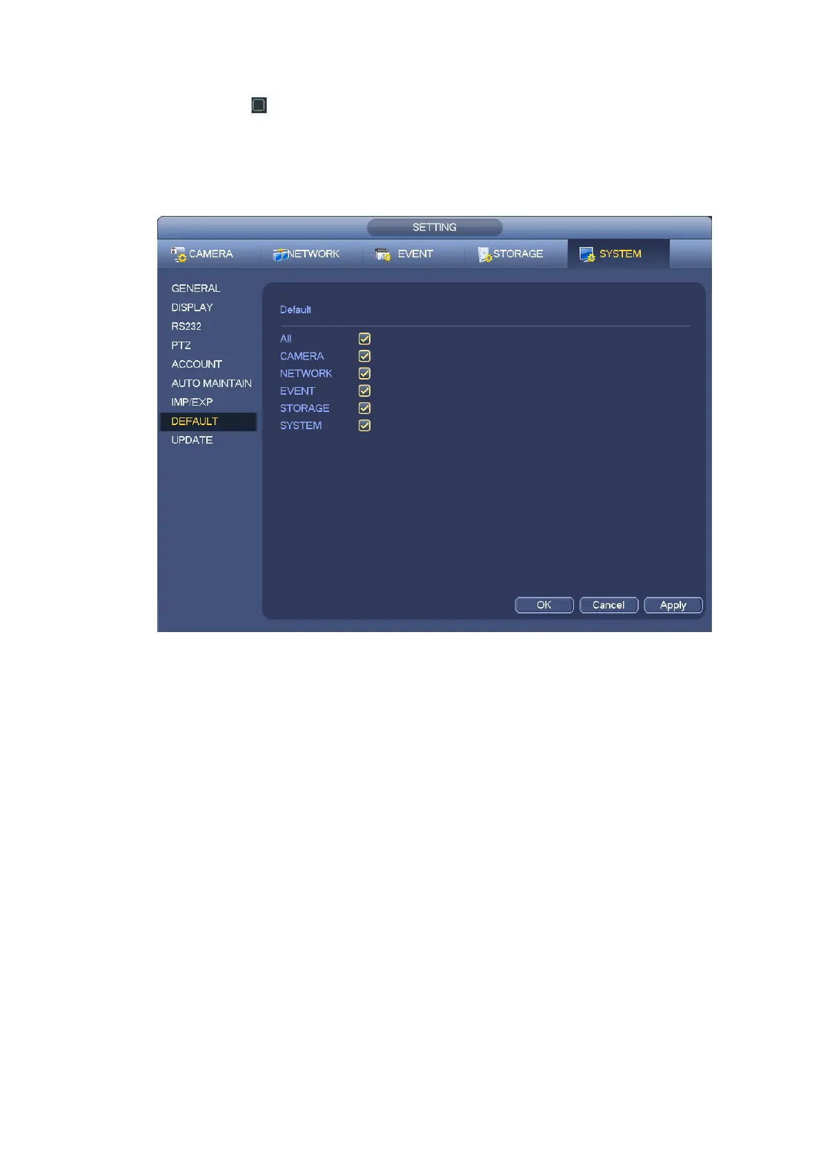 After you use default function, some your customized setup may lose forever! Please think twice before
