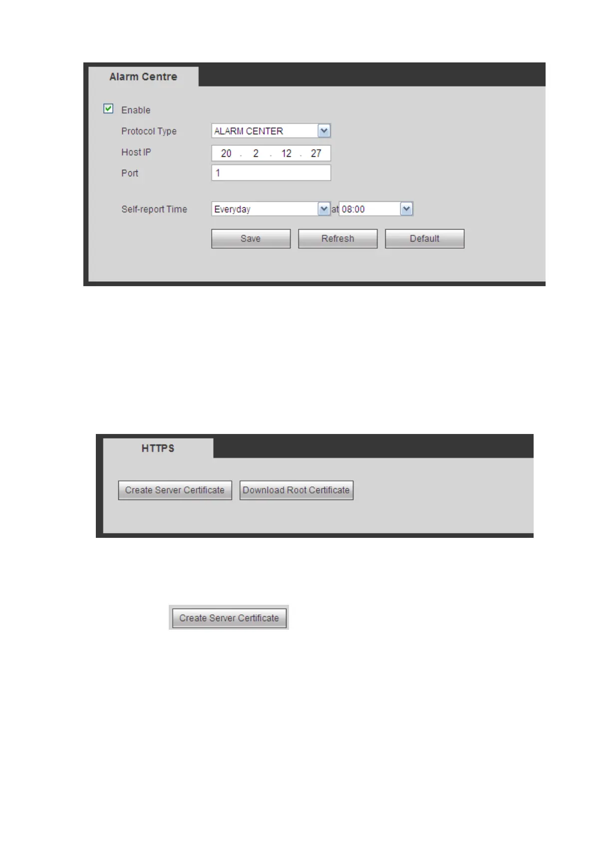 In this interface, you can set to make sure the PC can successfully login via the HTTPS. It is to guarantee