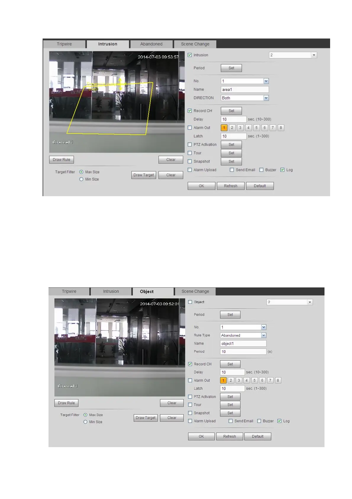 For the same channel,the object detect and the intrusion can not be valid at the same time.
