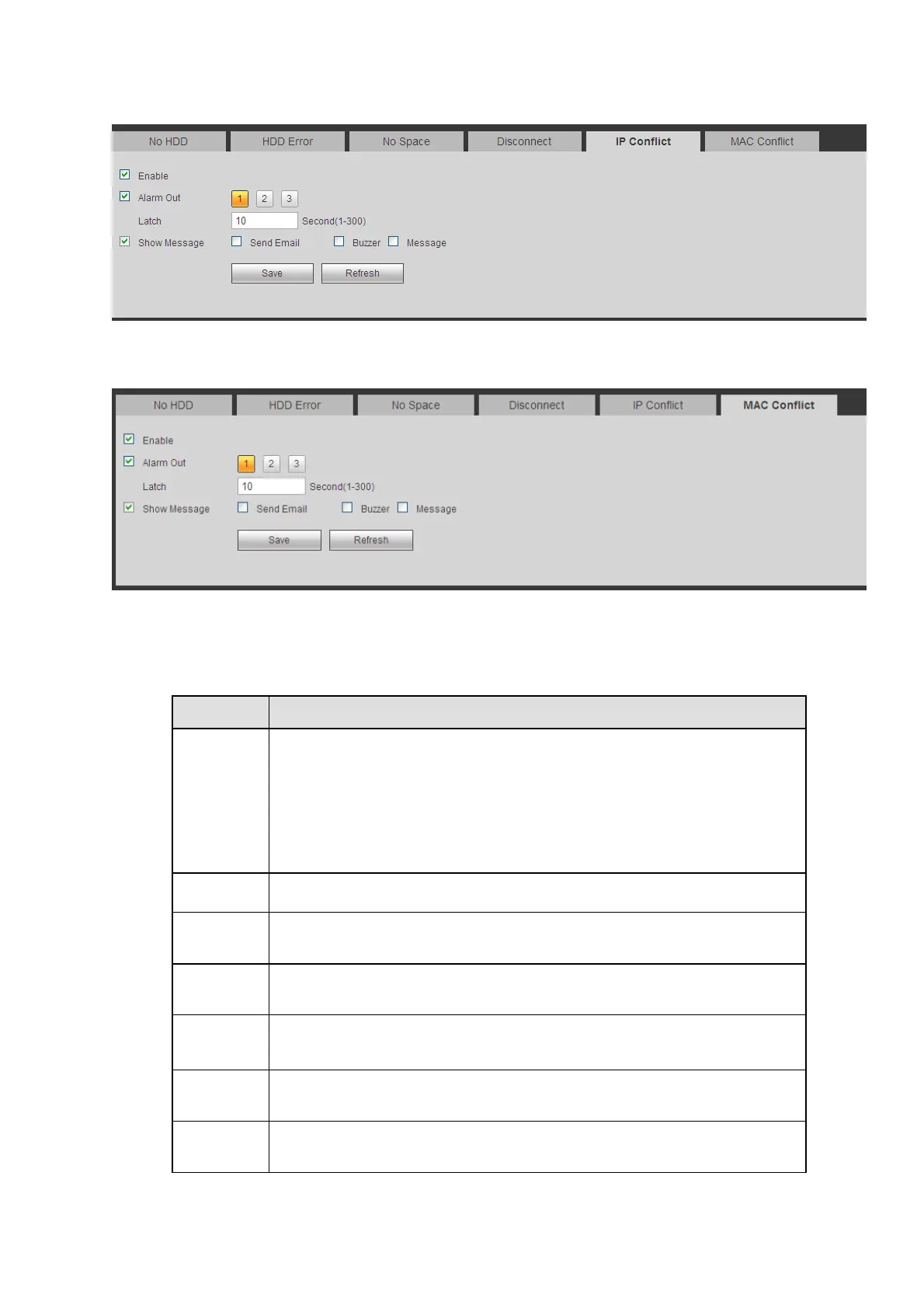 The alarm output can delay for the specified time after an alarm stops.