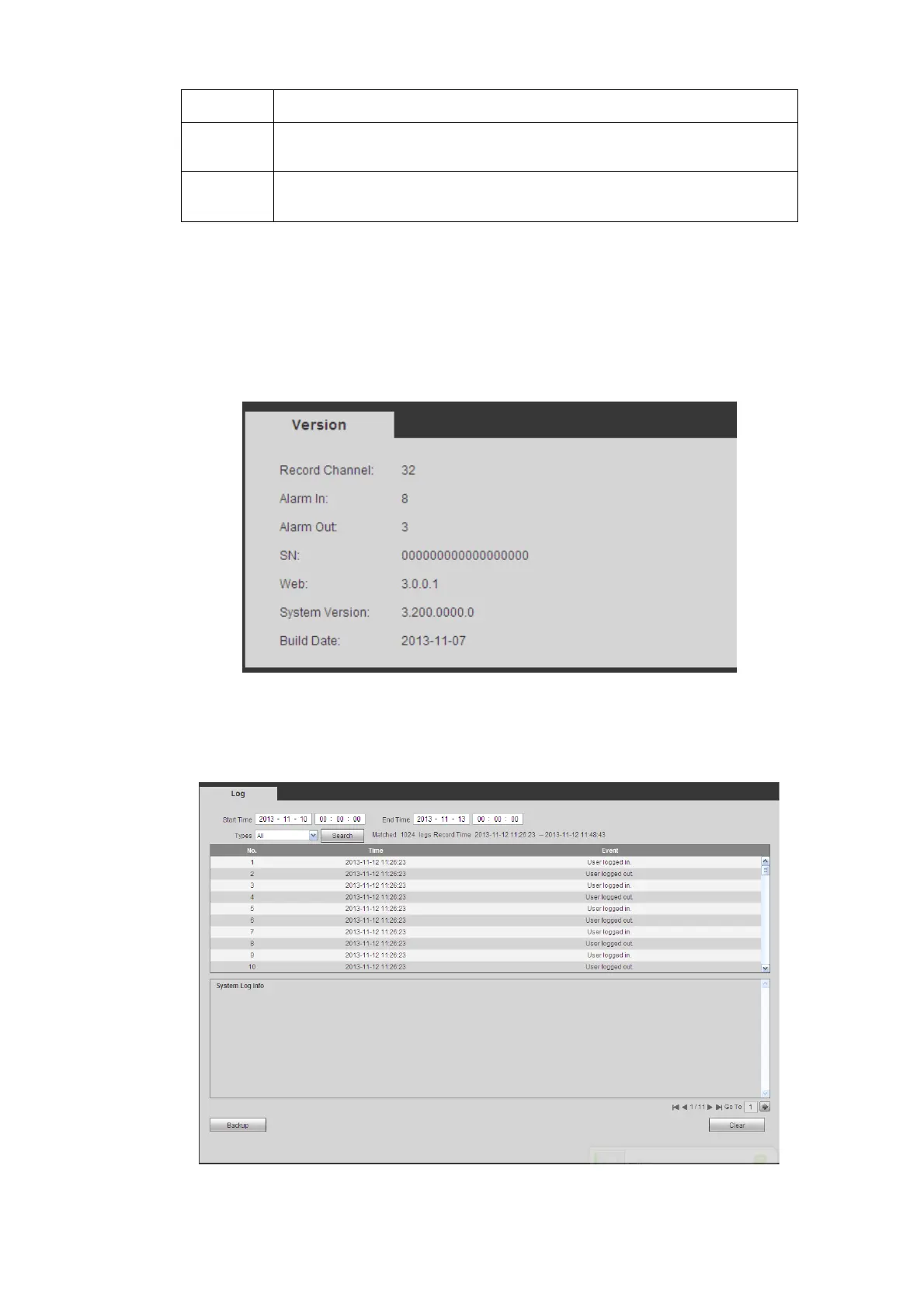 Here you can view record channel, alarm input/output information, software version, release date and etc.