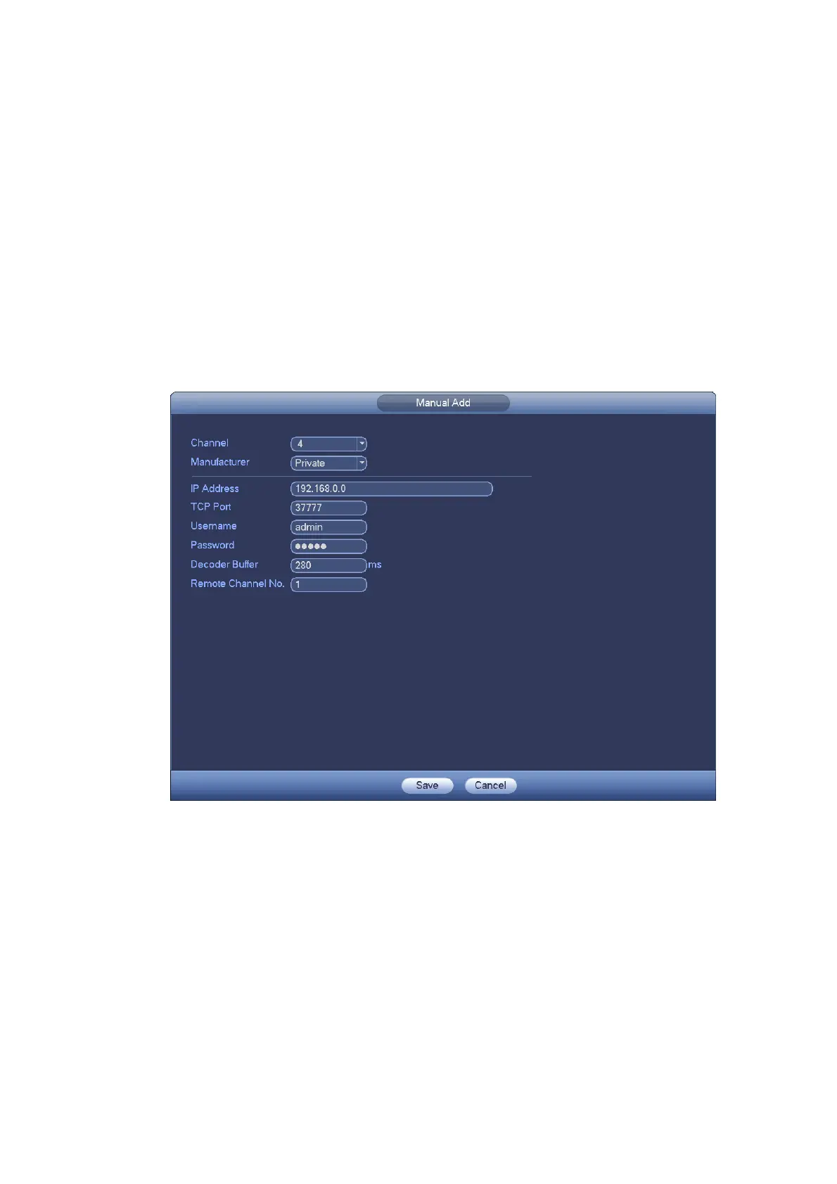 Click Manual Add button, you can add a device directly. Here you can set TCP/UPD/auto connection