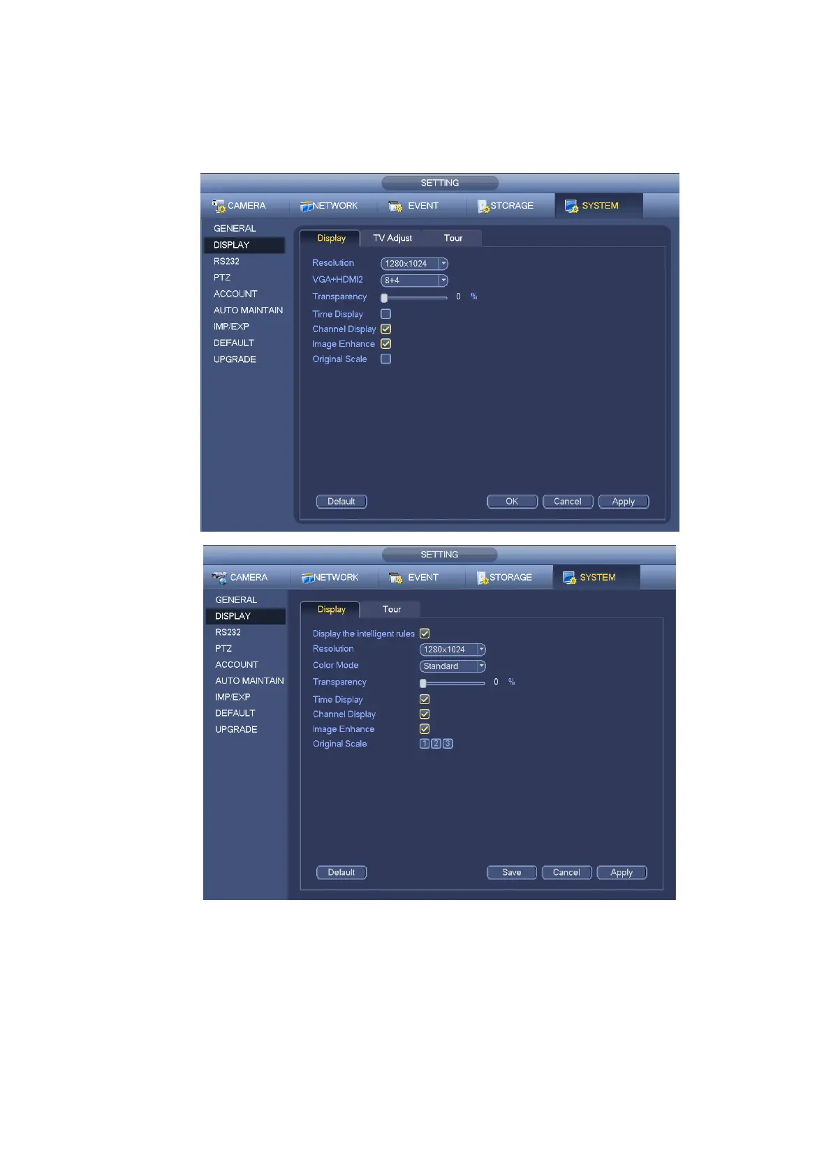 From Main Menu->Setting->System->Display, you can go to the following interface. See Figure 4-40.
