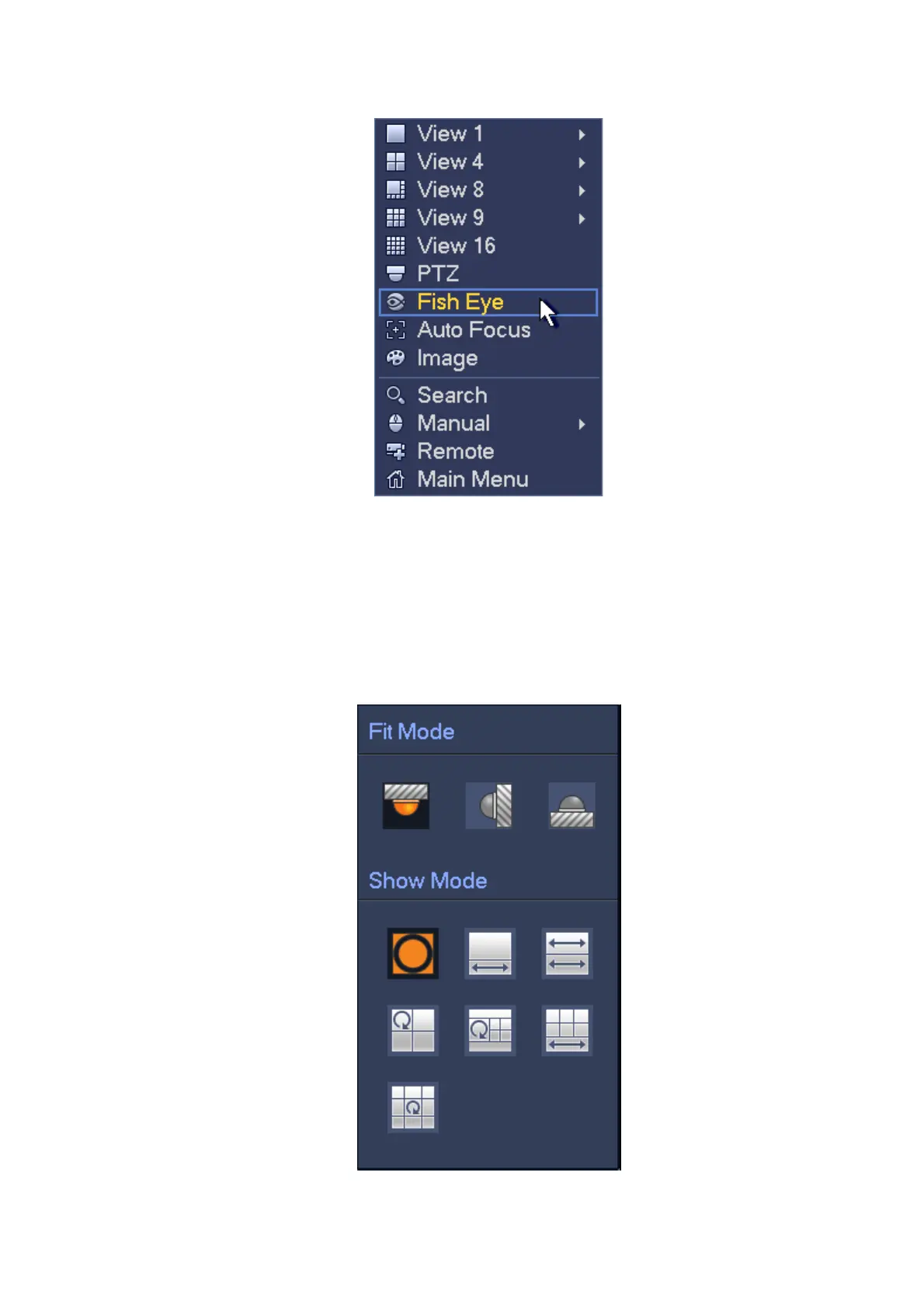 For the non-fish eye channel, system pops up dialogue box to remind you it is not a fish eye channel