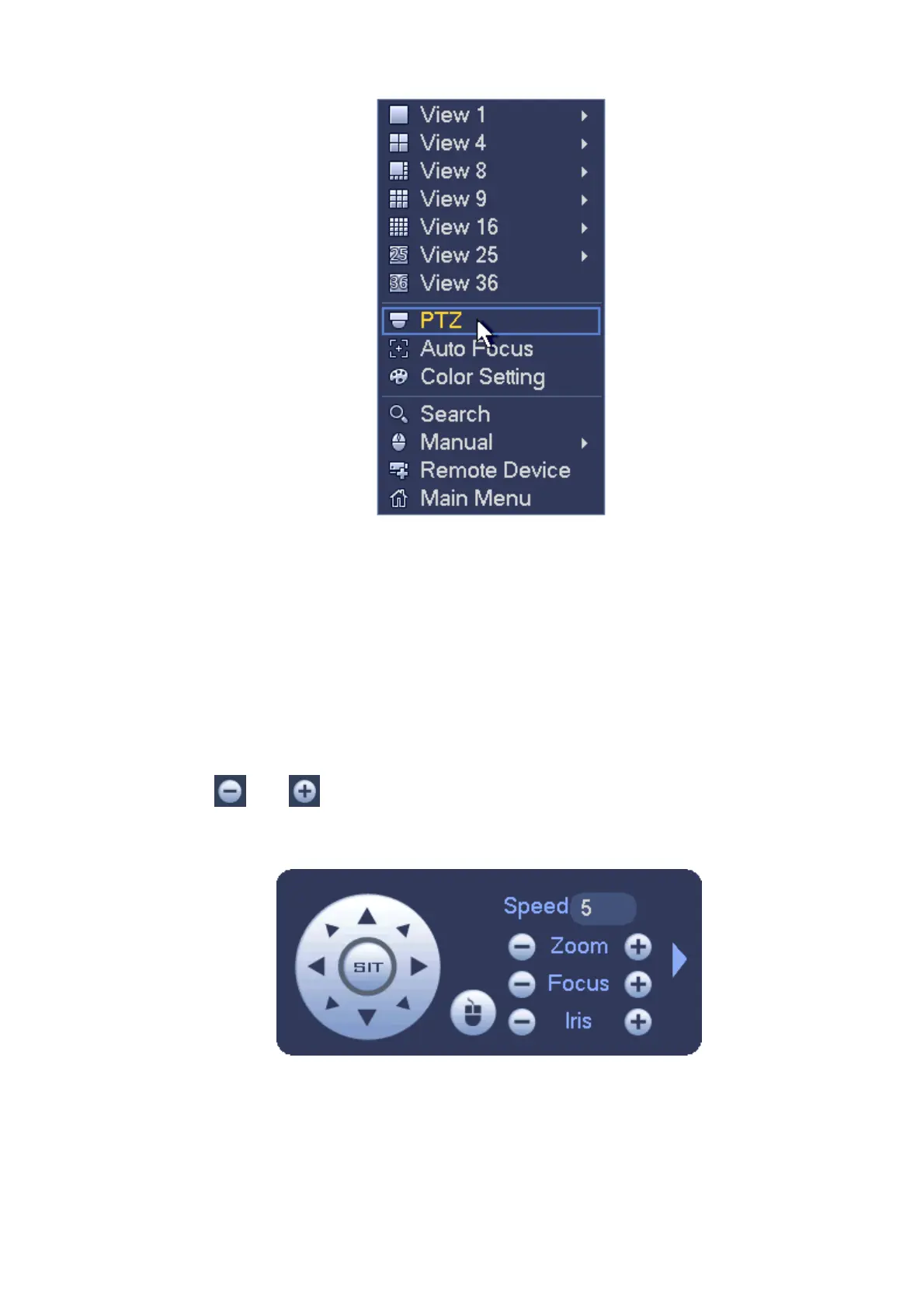 Here you can control PTZ direction, speed, zoom, focus, iris, preset, tour, scan, pattern aux function, light