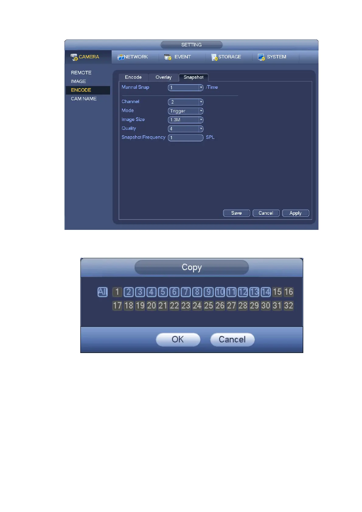 Set record time, record plan and etc. Please note system is in 24-hour record by default after its first